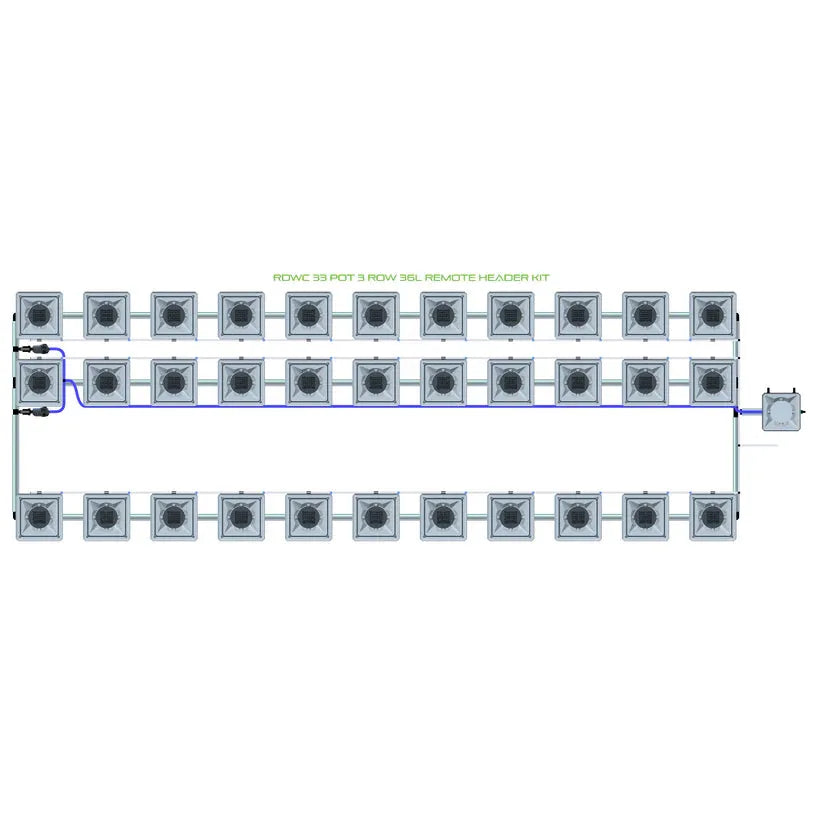Designed for large-scale commercial growers, licensed producers, and research facilities that need industrial-scale hydroponic farming with centralized nutrient management systems, the RDWC 33 Pot 3 Row Kit provides abundant oxygen and nutrient circulation directly to the root zone, creating ideal conditions for rapid growth and development. The unique design prevents common hydroponic problems like root clogging and oxygen deficiency that typically limit plant development.