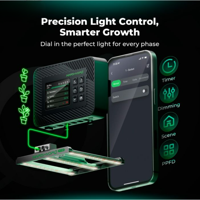 Automatically manages lights, fans, humidifiers, and dehumidifiers based on real-time temperature, humidity, and VPD monitoring.
