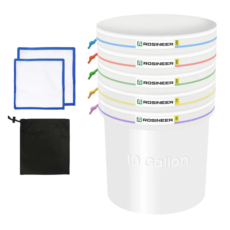 The Rosineer 10-gallon Bubble Hash Bag Set helps remove unwanted plant debris with its precise mesh sizes for cleaner extracts.