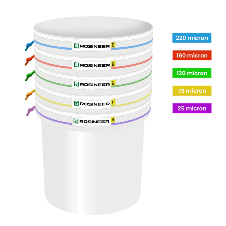 Each Bubble Hash Bag set includes five mesh sizes (25-220 microns) to ensure high-quality separation and yield.