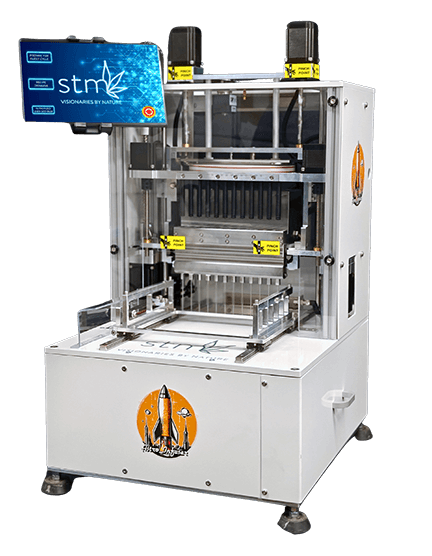 pre-roll infusion machine processes 12 pre-rolls simultaneously, completing a full 72-unit batch in less than one minute with exact, uniform dosing every time.