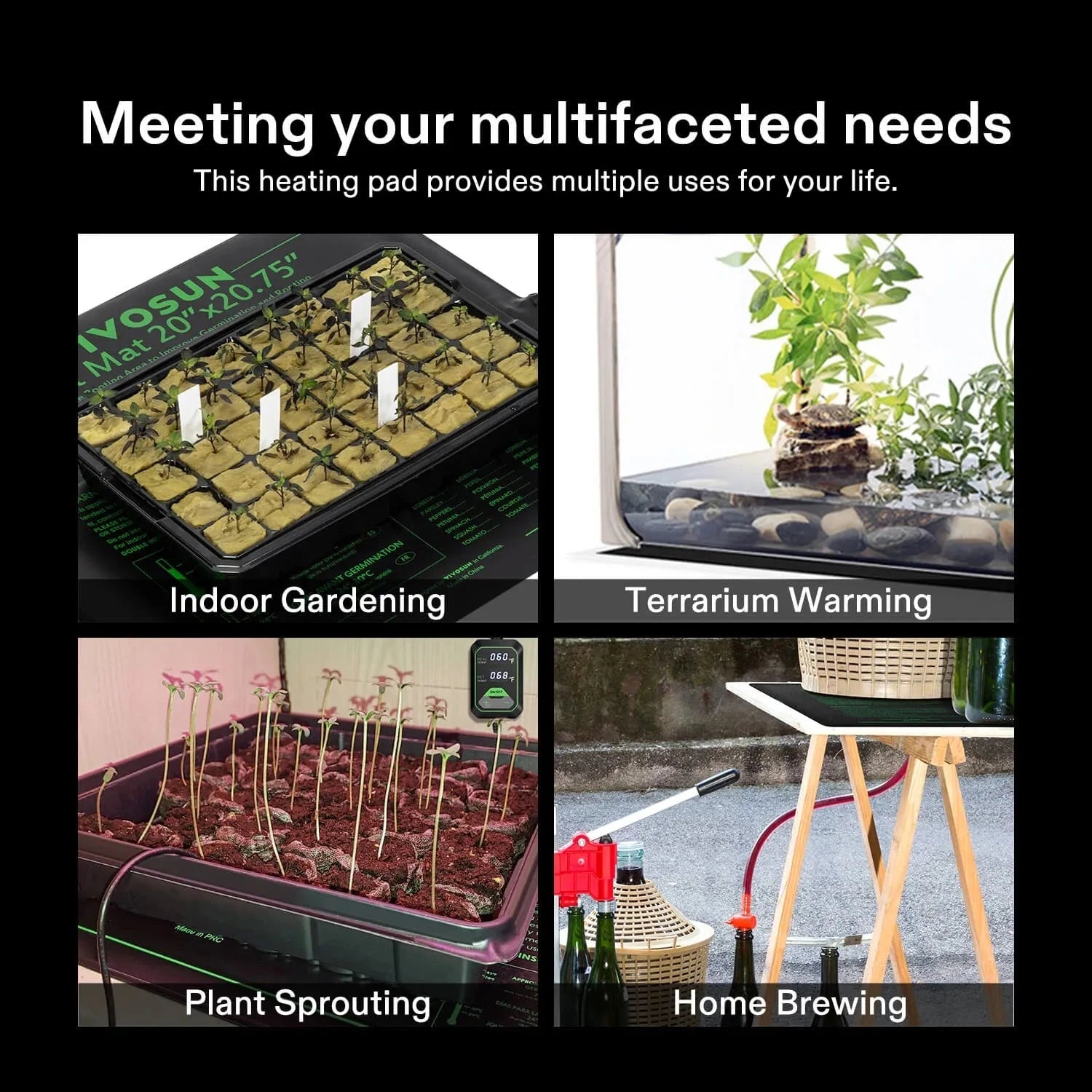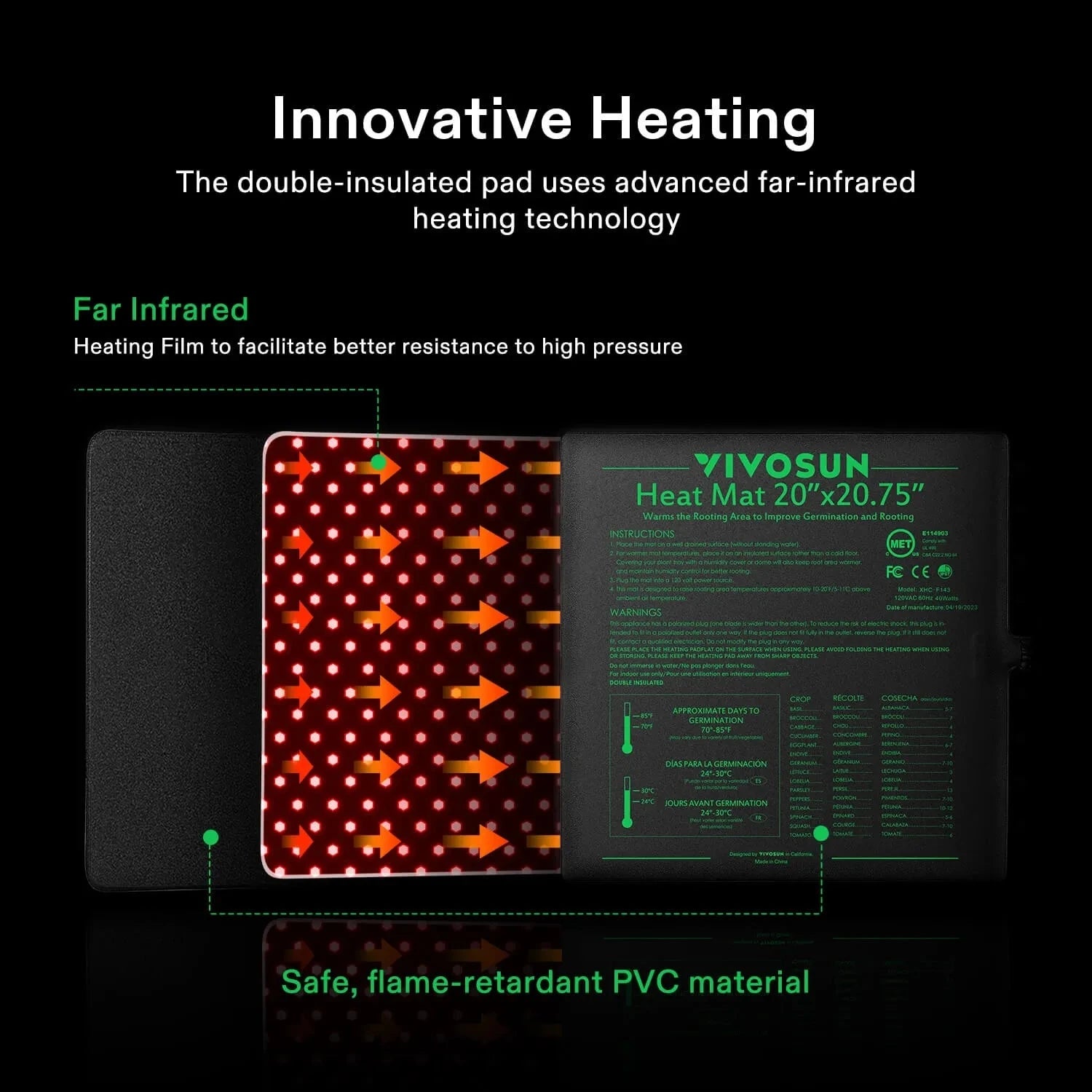 VIVOSUN 20″ x 20.75″ Seedling Heat Mat with Dual Digital Thermostat is the solution, combining advanced far-infrared heating with intelligent temperature control to create the perfect environment for faster, healthier plant starts.