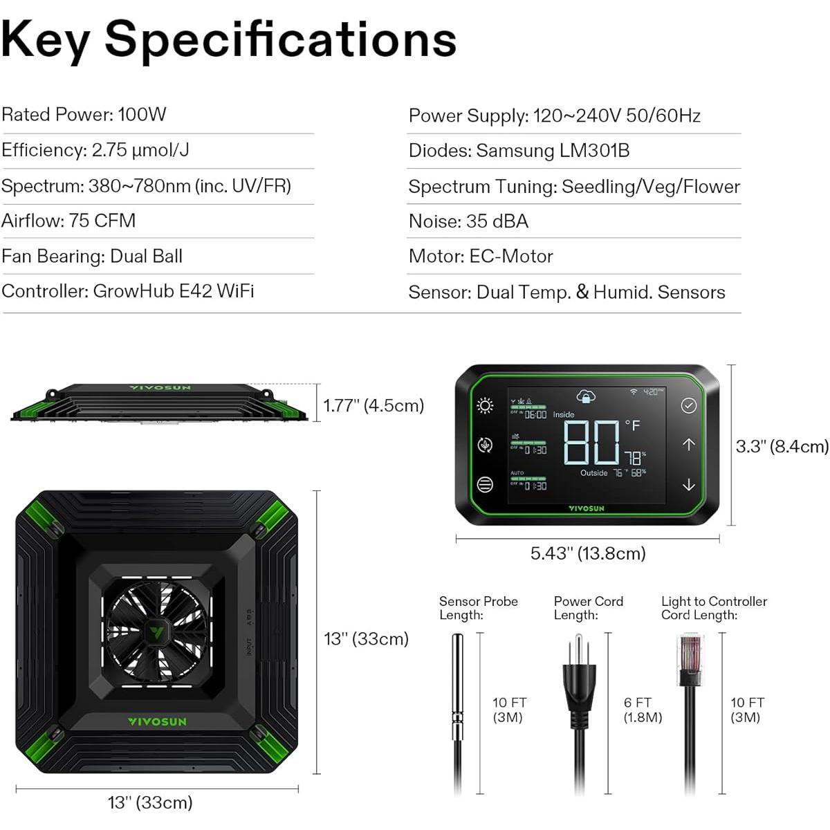 Vivosun AeroLight A100 LED Grow Light w/ GrowHub E42A