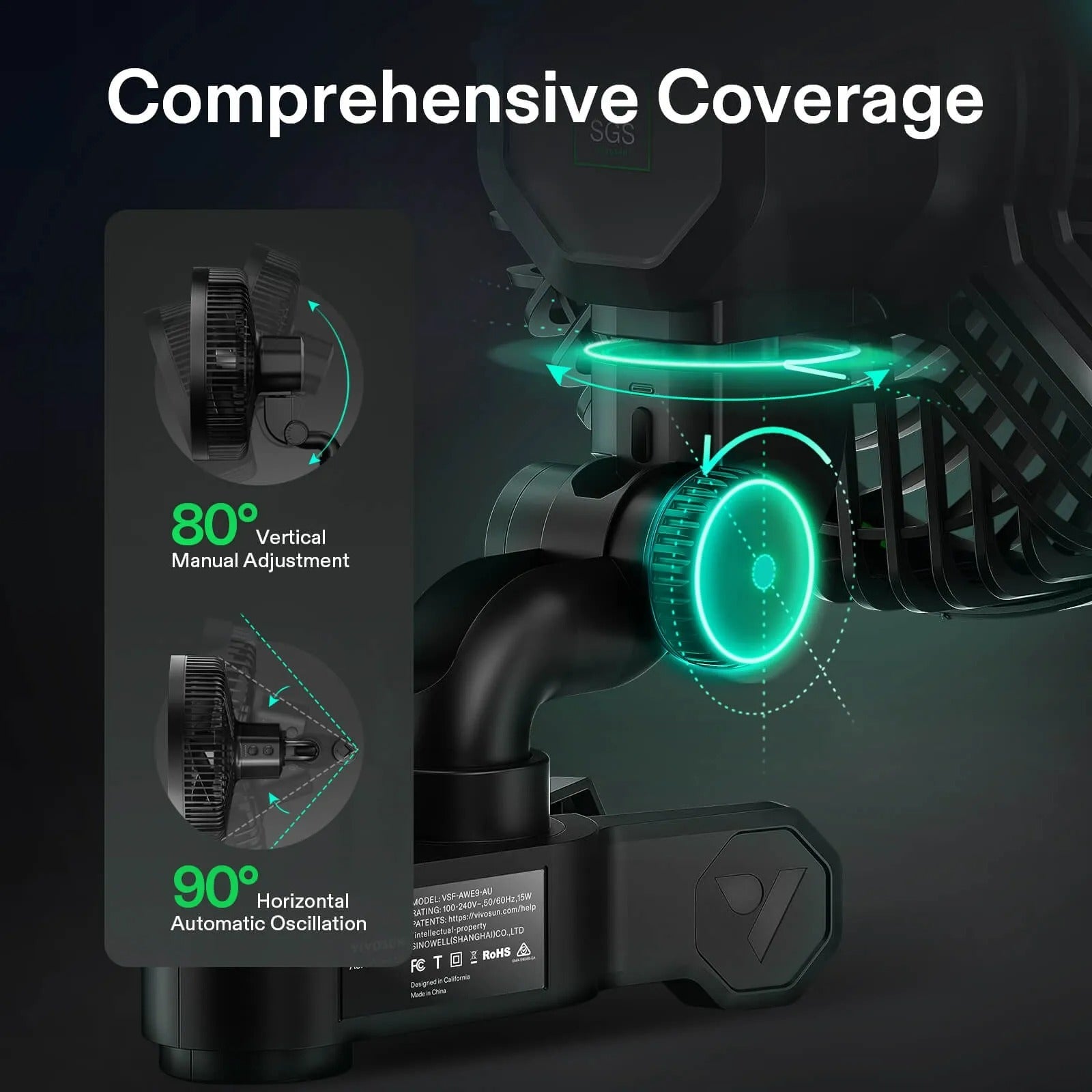 Two fans with 80° horizontal oscillation and 80° manual vertical adjustment provide comprehensive air coverage throughout your entire grow space from multiple angles.