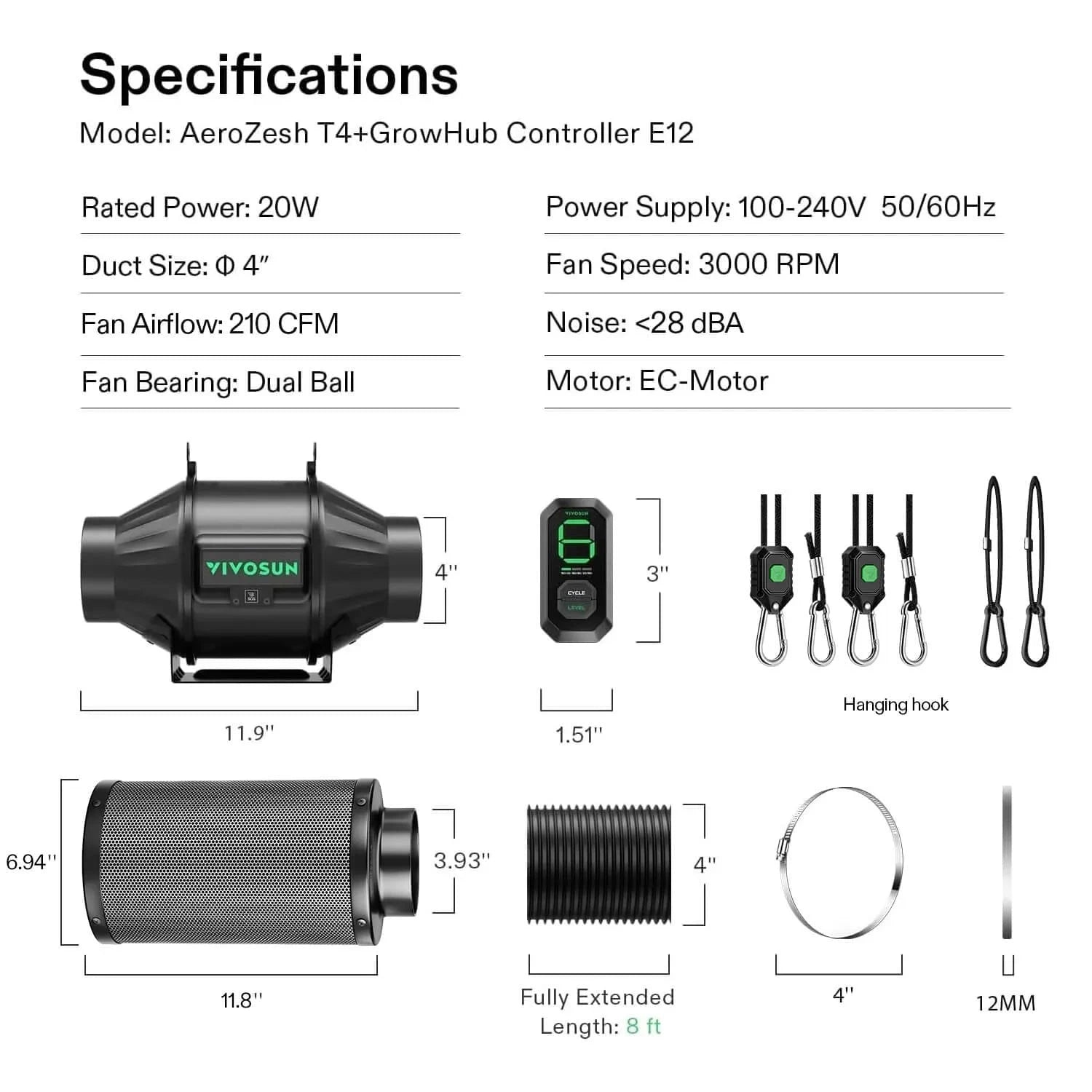Vivosun AeroZesh T4 w/ E12 Smart Air Filtration Kit - 4″ Duct