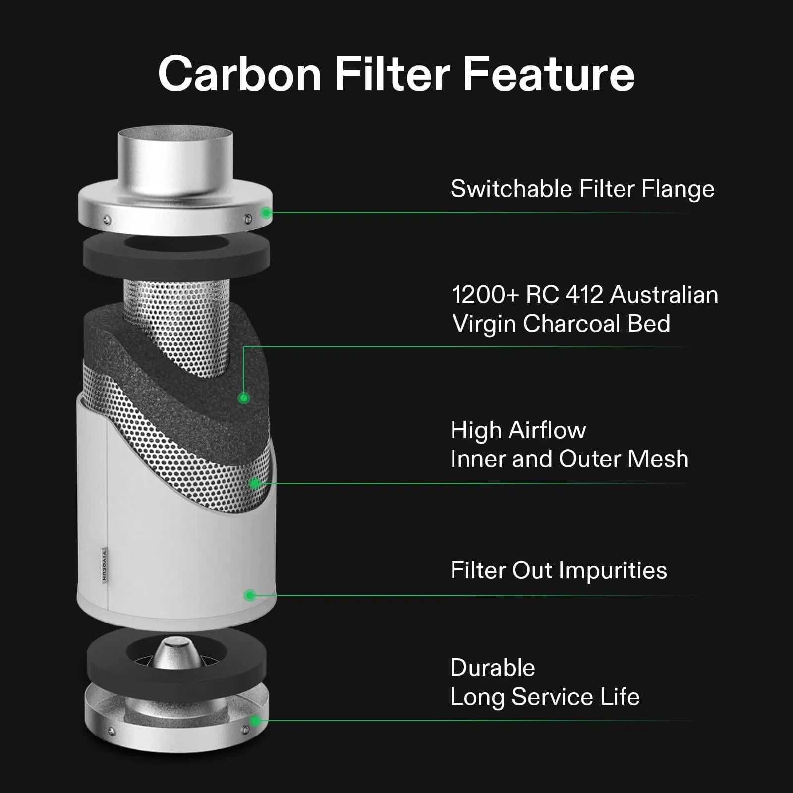 - 1x 8-inch Carbon Filter (1050+ RC 48 Australian Virgin Charcoal, 8" x 20")