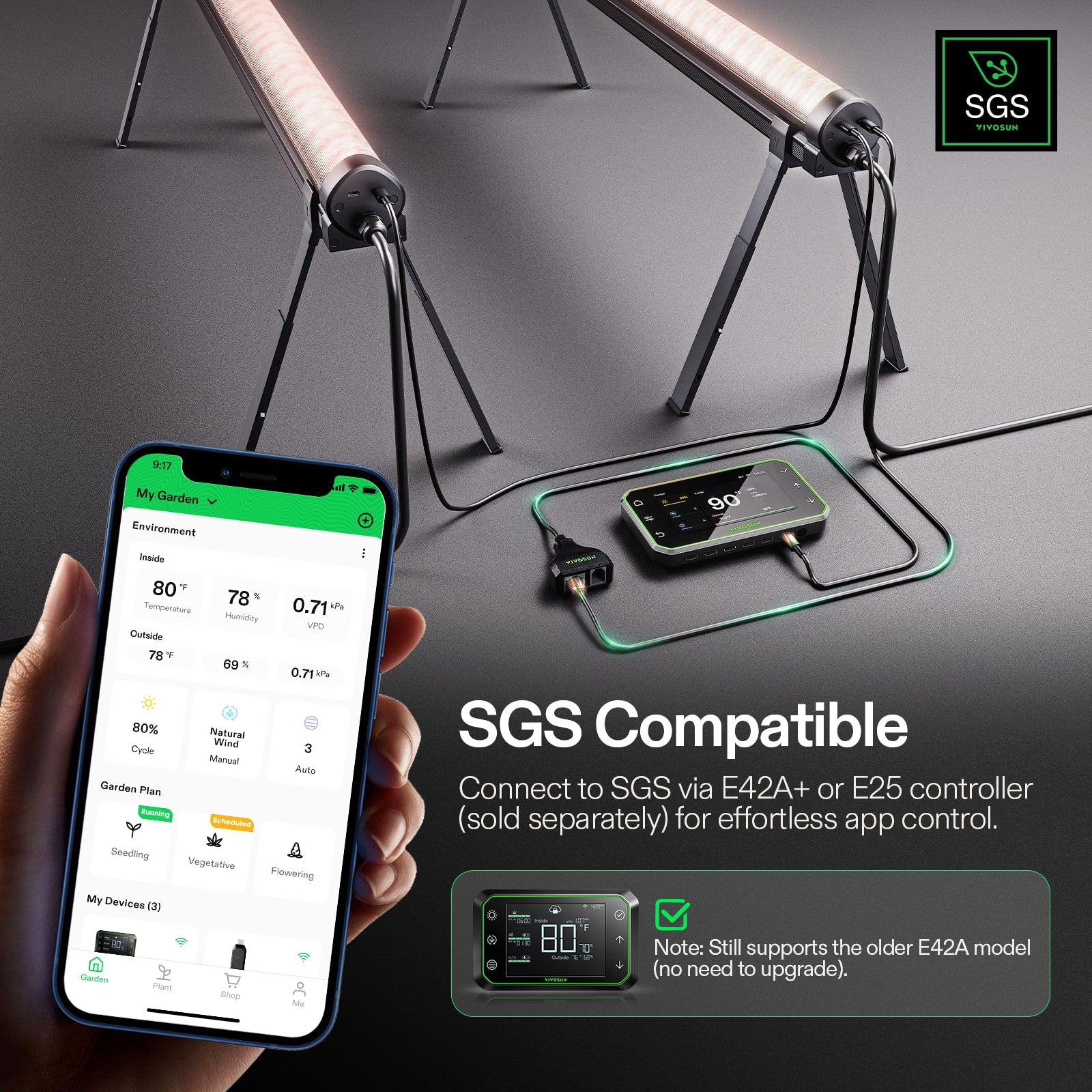 Connect to the VIVOSUN SGS for remote on/off, 25-100% dimming, and synced grow recipes via the app.