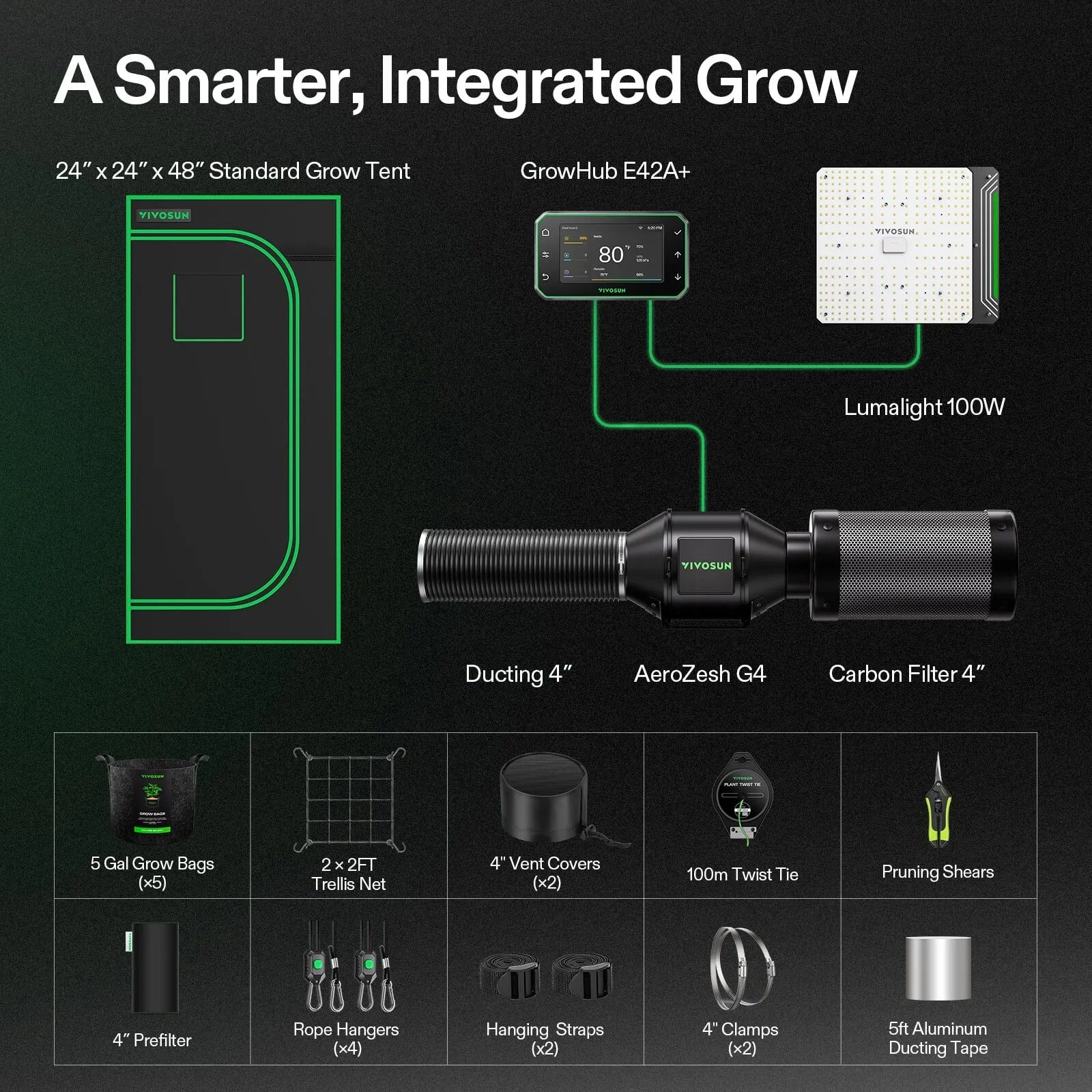 GrowHub E42A+ controller connects all devices into one app for real-time monitoring and remote adjustments from anywhere.